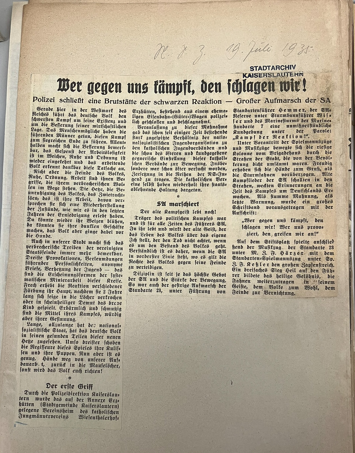 Polizei schließt eine Brutstätte der schwarzen Reaktion — Großer Aufmarsch der SA
