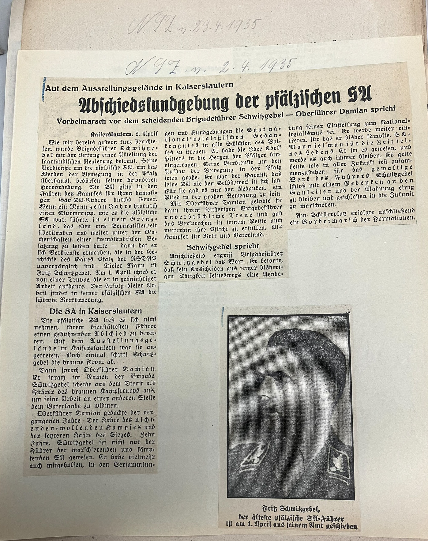 Ausschnitt A: 01.04.1935 / Ausschnitt B: 23.02.1935