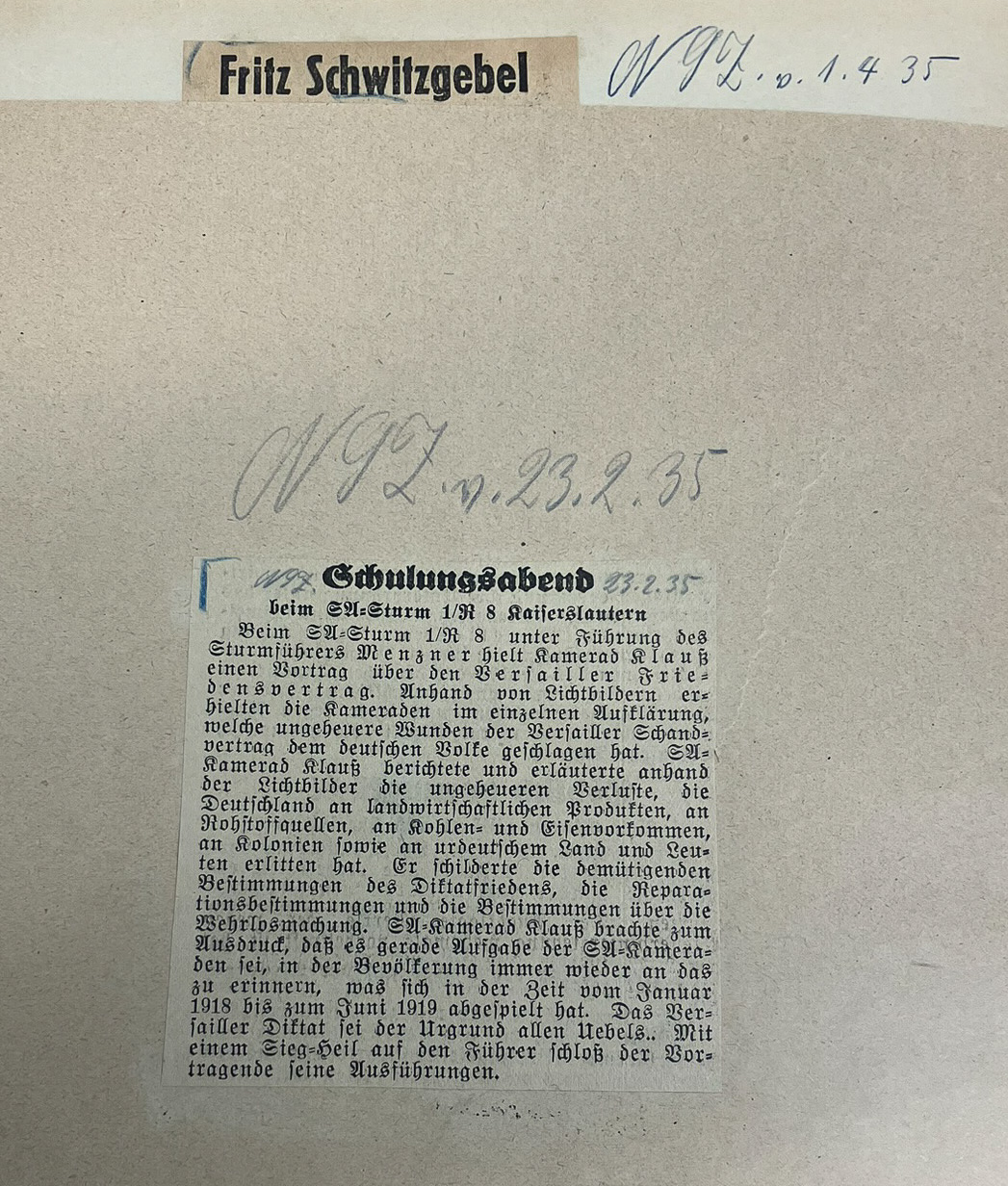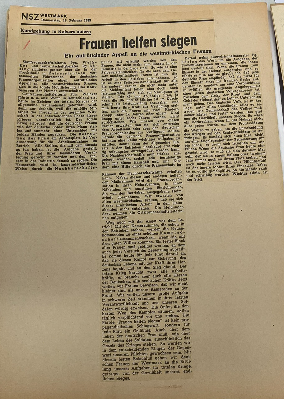NSZ (Nationalsozialistische Zeitung, vermutlich NSZ Rheinfront oder Westmark)