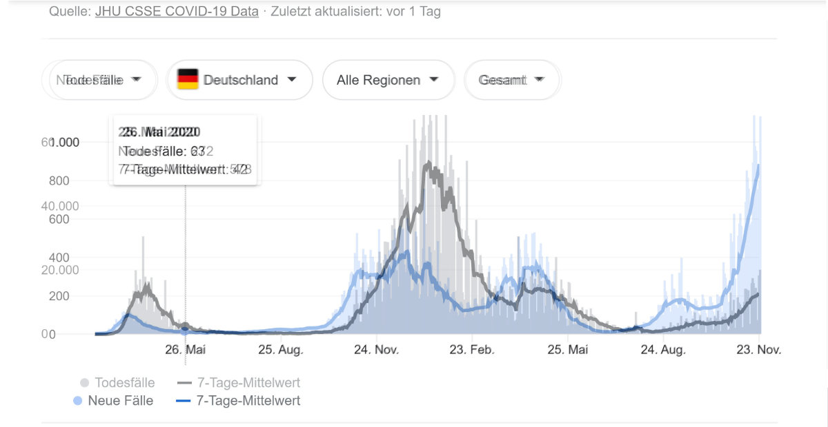 2021-11-24 | Die Kopplung der Sterberate an die Neuinfektionen ist weiterhin vorhanden.